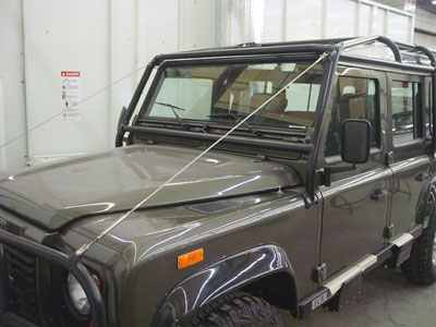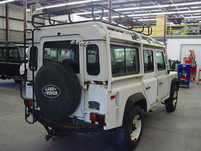 Here you can see the 110 a little further along. The winch rope and recovery points have been added to the front bumper and everything is starting to look ready to hit the road.