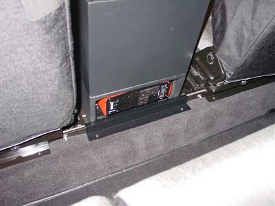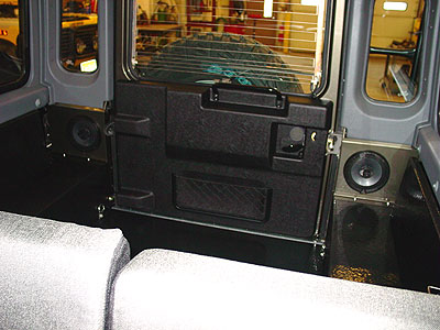 In the cargo area of this 110 we have now installed the custom subwoofer boxes (one 8" subwoofer on each side of the truck) that have been Rhino-Lined for the ultimate in protection. The subs and the custom made stainless steel grills have been installed, as well as 6 cargo tie down points so that all types of gear can be carried and strapped down without any problems at all, and if something spills... just hose it out, that is the beauty of the truck bed-liner.