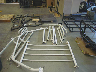 The safari cage also gets a full restoration. Any damaged areas are repaired with new metal to be factory correct. These pieces will now be loaded up to get blasted to white metal and then zinc and powder coated in a satin black.