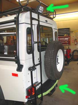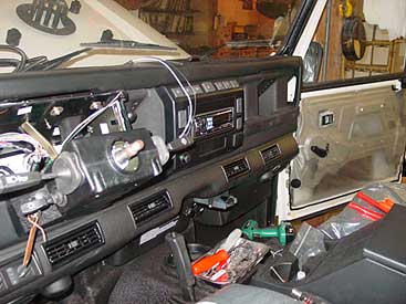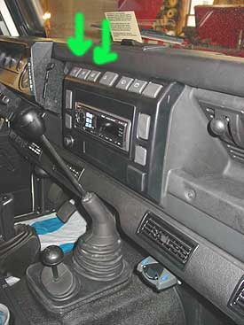 Up front we added wiring and switches for driving and fog lights (green arrows), that the customer plans to install later on, and installed an Alpine CD head unit to provide the tunes. We also installed an electric trailer brake controller and a number of security features that make this 110 virtually un-steal-able.