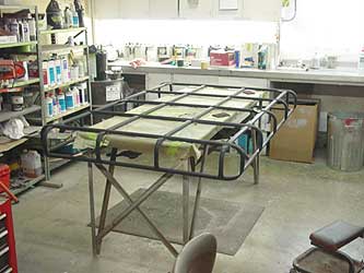 Here you can see we are restoring the roof basket. This one has been modified to be able to come on and off easily as per the customers request. It will now be epoxy primed and painted in the correct satin black.