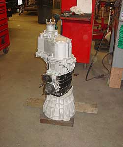 The new R380 gearbox and 1.4 ratio transfer case have now been mated together and are ready for assembly into the awaiting rolling chassis.