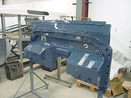 Speaking of new bulkheads. Here is a shot of the brand new, not rebuilt, bulkhead that will go into 110 #4. It has been epoxy primed and then painted inside and out with numerous coats of the customer's color choice of Arles Blue. Yes, we said "customer". Once again the ECR restoration of NAS Defender 110 #4 was sold before the project was even started this time.